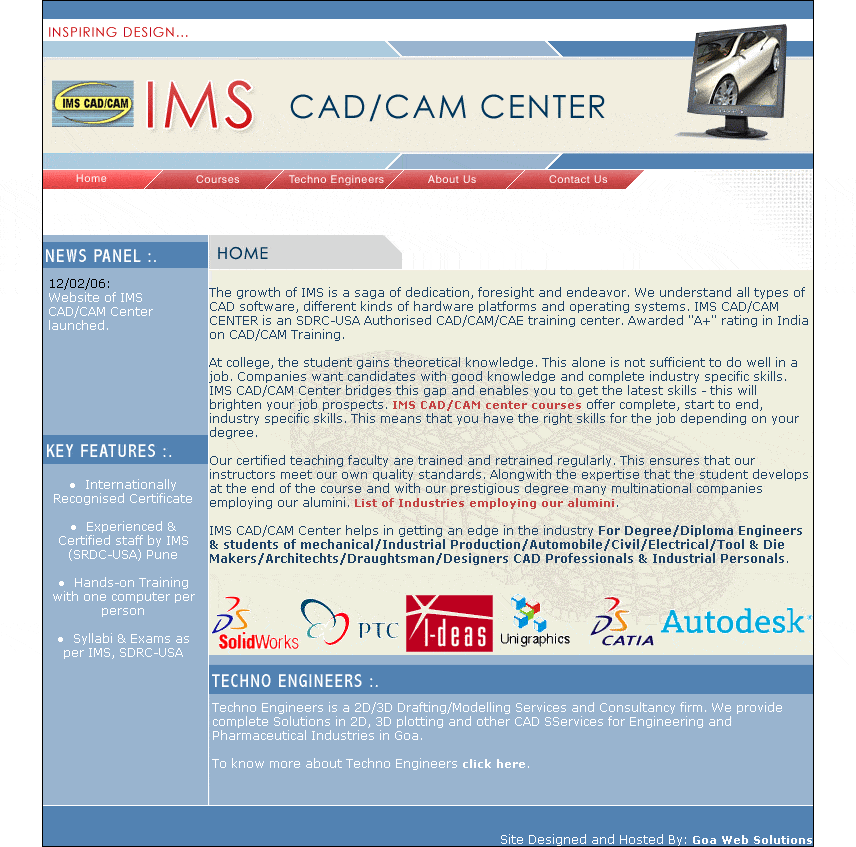 The task included Website Design for IMS CAD/CAM CENTER, GOA. The requirement was, development of a sleek website layout to showcase their services. HTML and CSS is used for the website layout.